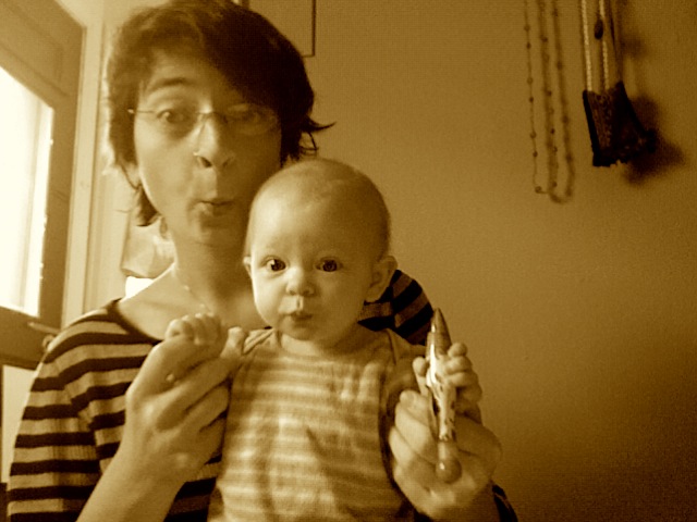 She is a joy. I've never really liked babies. But she is a joy--no whining, only cranky when she's teething, easy to please, content to chill, and she likes to dance. When she's asleep I clean up the house. When she's awake, she gets fed or changed, but here are some pics of other things we do.